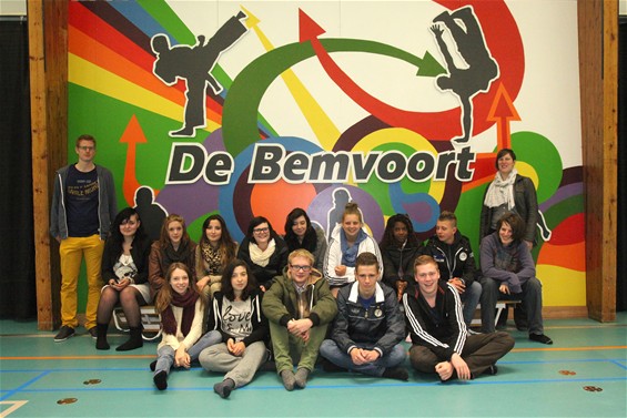 een muurschildering in de sporthal. Na een ontwerpwedstrijd tussen de twee klassen van het vierde jaar kwam klas 4.8 als winnaar uit de bus. Zij mochten de muur dan ook echt schilderen. Fier toonden zij vanmorgen hun eindresultaat. en dat mag er zijn!
