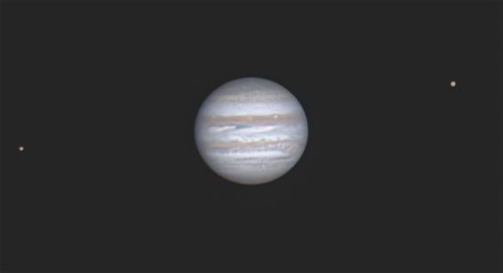 Jupiter met twee van zijn manen (foto boven). Je kan duidelijk details waarnemen op de planeten, weliswaar met een telescoop. Wie ook wil weten waar en wanneer welke planeet aan de hemel zichtbaar is, kan best het programma “