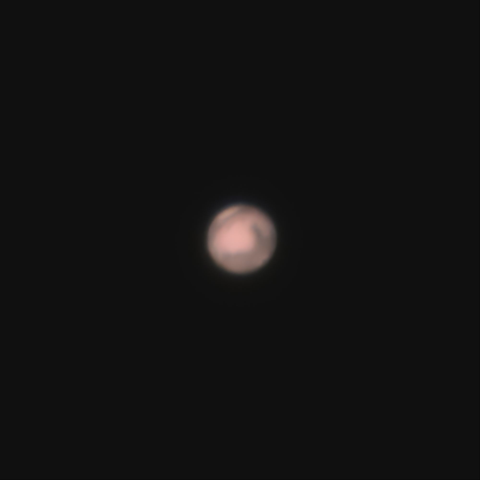 Wie de koude wil trotseren kan er reeds vroeg op de avond van genieten, aldus Peter. Gisterenavond maakte hij een foto van de rode planeet