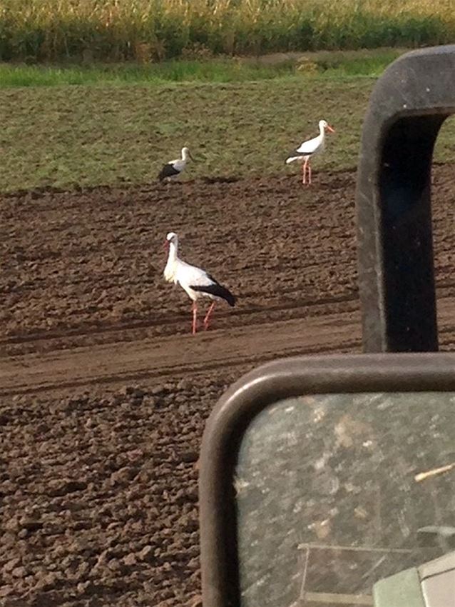 meer ooievaars dan huismussen. Theo Paesen telde vandaag op het veld, tussen de tractoren, liefst