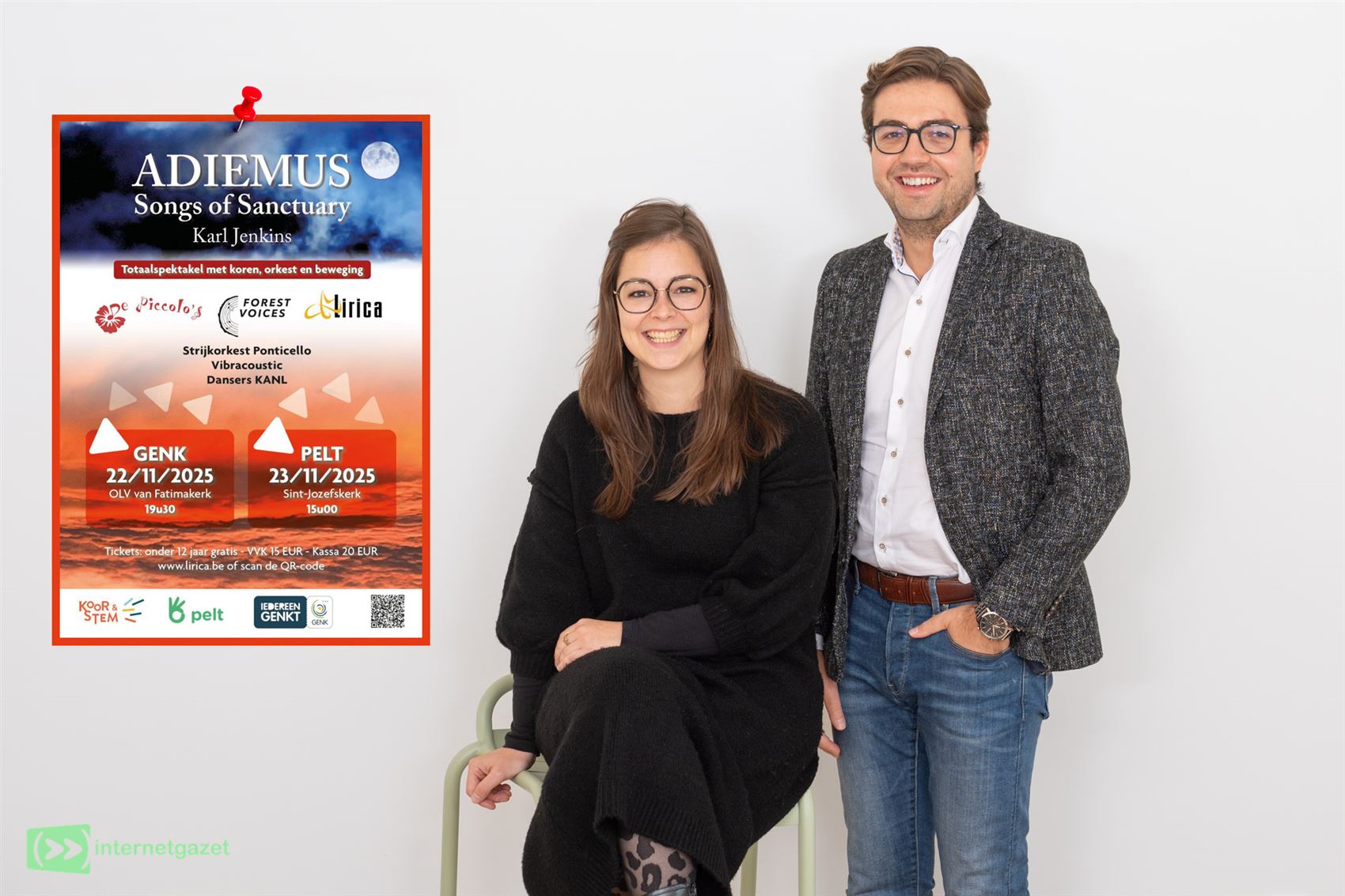 Op zondag 23 november verandert de kerk van Boseind in Pelt in een podium voor een bijzonder muzikaal totaalspektakel. Dirigente Sarah Robaeys brengt maar liefst drie koren, een groep dansers, een slagwerkensemble én een kamerorkest samen voor een meeslepende uitvoering van Adiemus – Songs of Sanctuary, het wereldberoemde werk van componist Karl Jenkins. Een concert dat belooft te verrassen en te ontroeren. Wij spraken met Sarah Robaeys en Fryderyk Sevens: