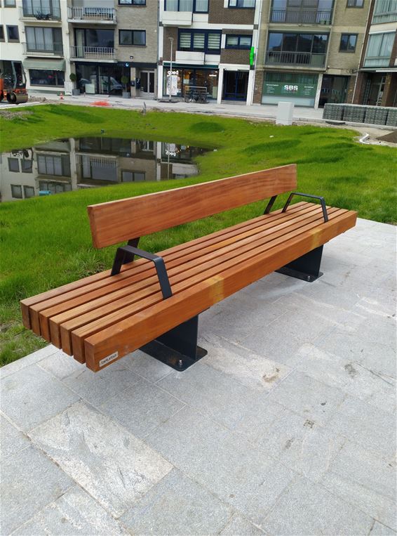 drie nieuwe zitbanken geplaatst op het vernieuwde