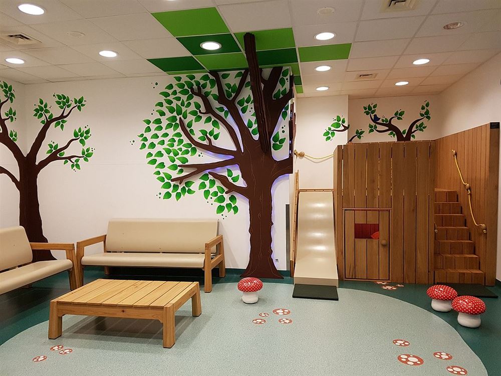 dagzaal van de kinderafdeling van het Mariaziekenhuis is in een volledig nieuw kleedje gestoken. Het resultaat van de vernieuwing mag er zijn: de zaal werd omgetoverd tot een toffe ruimte helemaal in de sfeer van het bos, met bankjes, een speeltoestel, een glijbaan en paddenstoelen, waar de kinderen zich kunnen uitleven. Het gehele concept kwam tot stand dankzij een