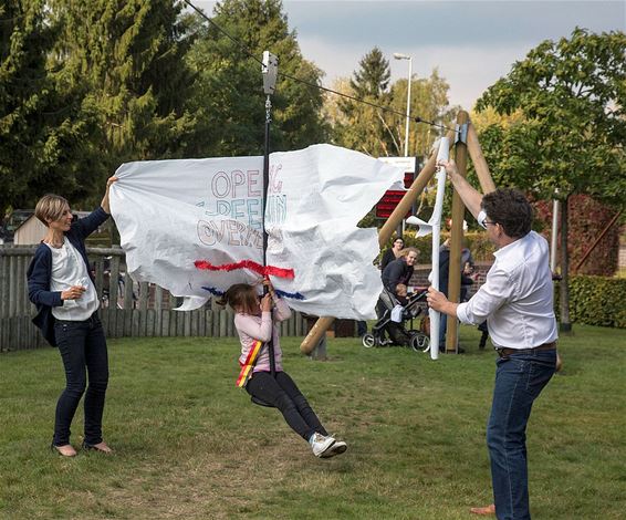 Lore Gielen heeft deze namiddag officieel de nieuwe speeltuin aan de oude school