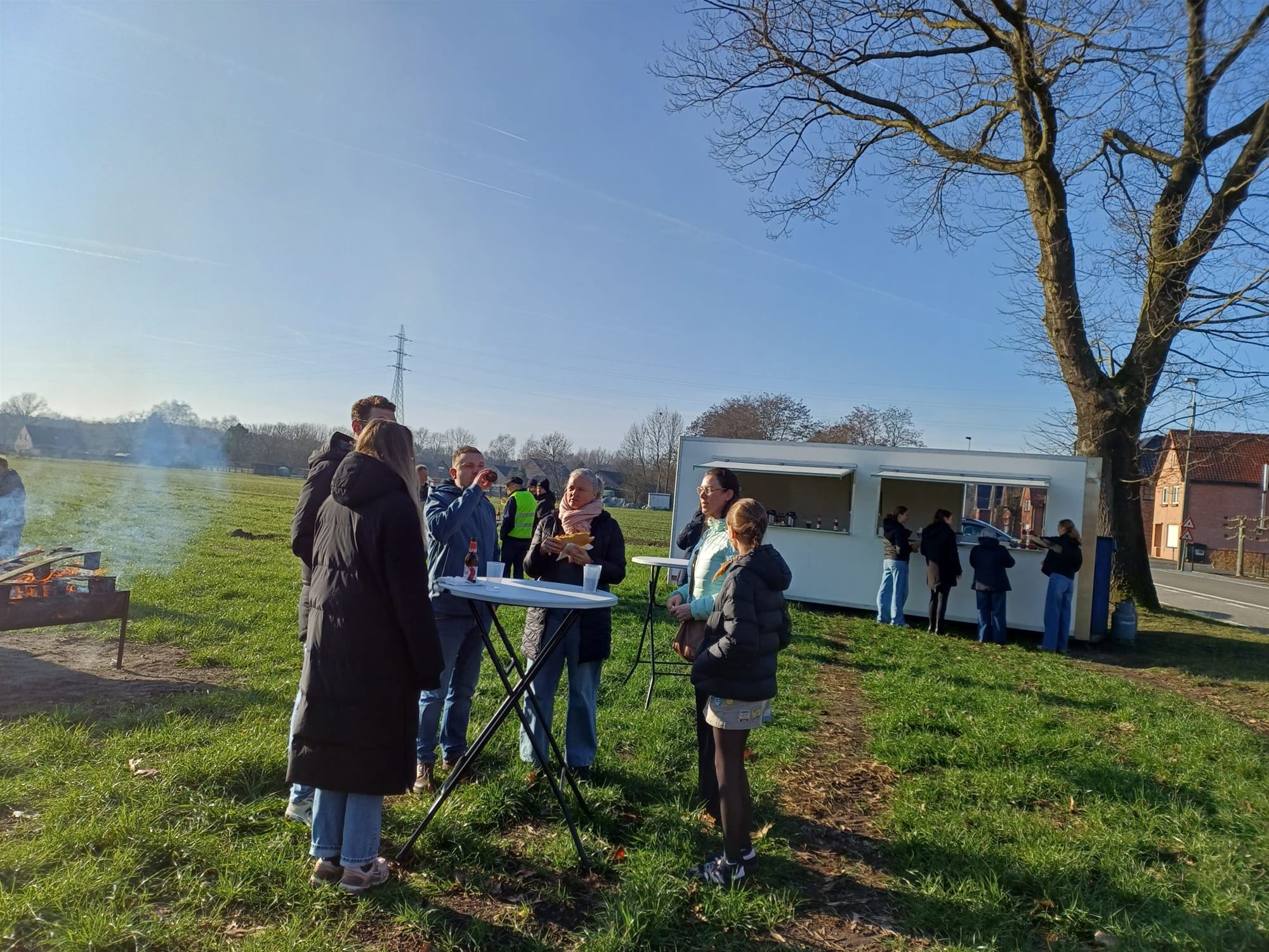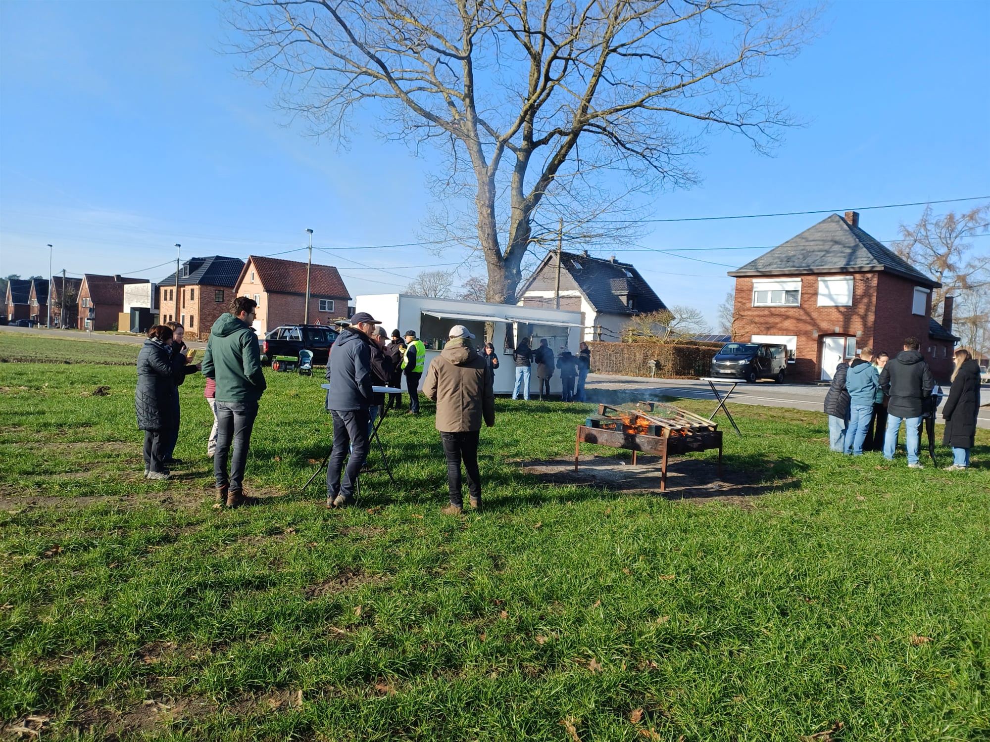Na de wandeling bleef iedereen nog gezellig napraten in het winterzonnetje. Er werd samen genoten van een hotdog en een bo’ke met spek. Het werd een fijne voormiddag vol ontmoeting, babbels en verbondenheid, waarbij de buren elkaar persoonlijk de beste wensen voor 2026 konden overmaken.