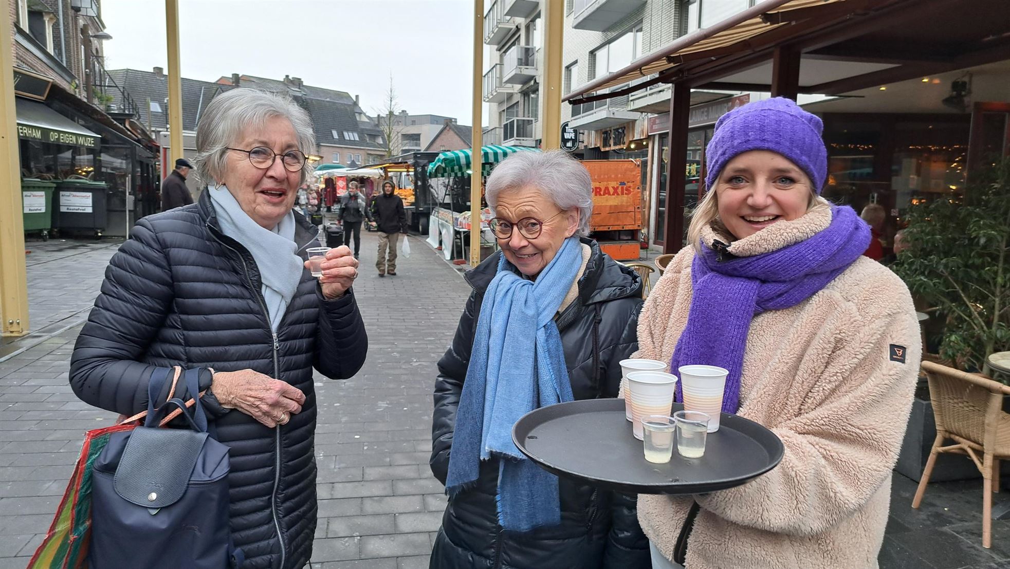 nieuwjaarsborrel plaats. Het is een geliefde traditie die de marktkramers met enthousiasme in ere houden. Bezoekers van de markt werden hartelijk welkom geheten met een hapje en een drankje, aangeboden door de lokale marktkramers. Het evenement markeerde niet alleen de aftrap van het nieuwe kalenderjaar, maar bood ook de gelegenheid om samen te komen en het glas te heffen op een voorspoedig en succesvol marktjaar.