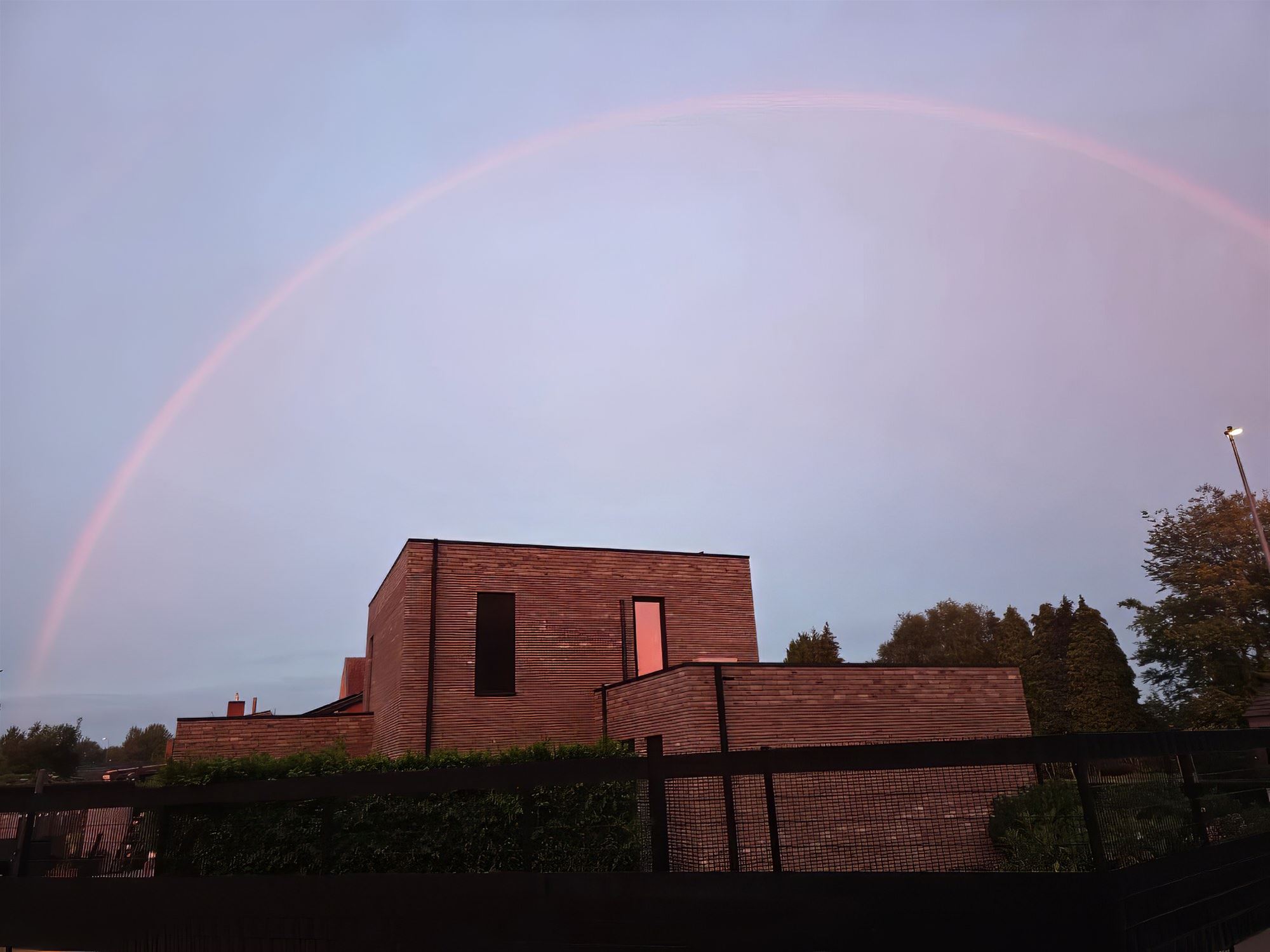 Het omgekeerde gezegde ken je misschien ook: “Avondrood, mooi weer aan boord” – een rode lucht bij zonsondergang duidt meestal op droog en stabiel weer. UPDATE Ook Ronald Beks zag het ochtendrood, maar toen hij zich omdraaide, zag hij geen regenboog, maar een boog (foto links onder). Ook op 't Hent kleurde de hemel rood, daar maakte Jochen Heyligen een mooie foto van (foto rechts onder).
