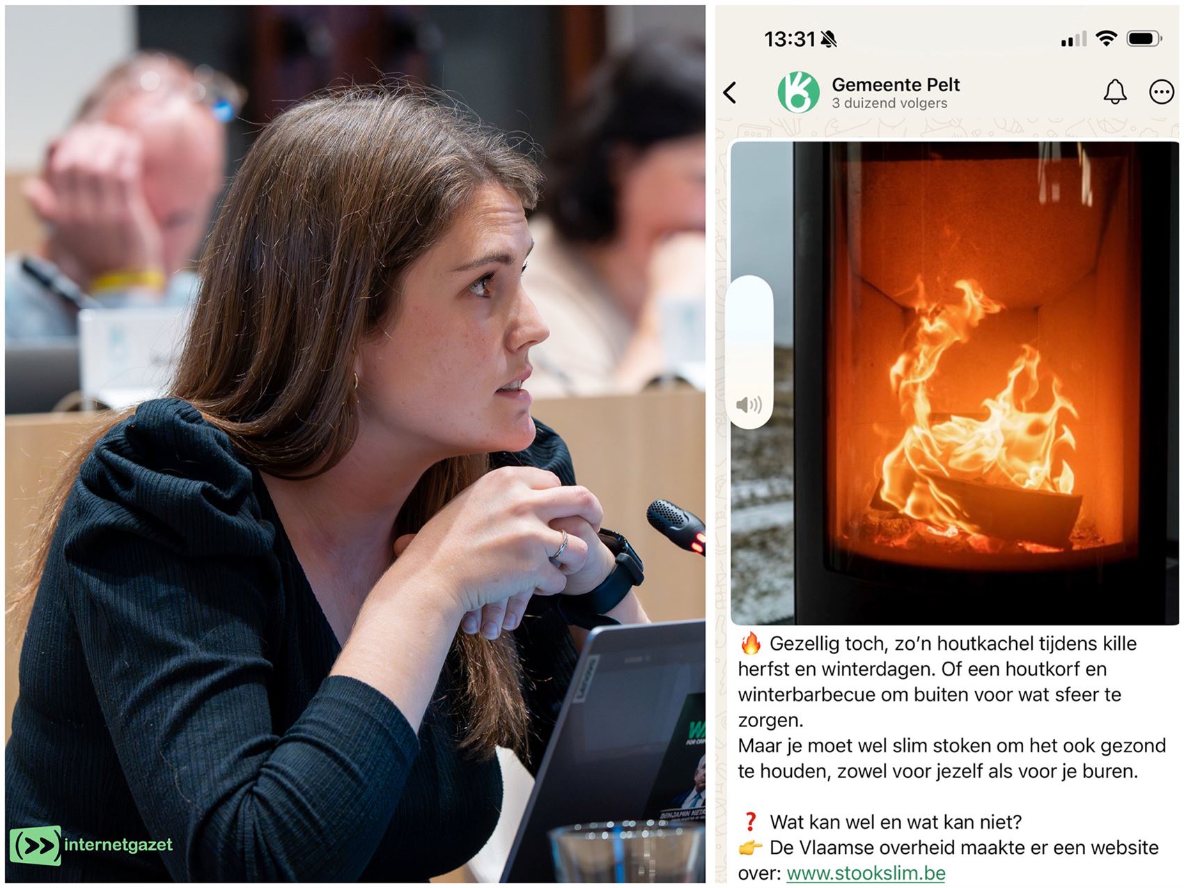 Enkele dagen na de gemeenteraad zette de gemeente een nieuwe stap: op 28 oktober lanceerde Pelt via haar WhatsApp-kanaal een sensibiliserende boodschap rond gezond stoken. Daarbij werden inwoners doorverwezen naar www.stookslim.be , waar te vinden is wat wel en niet kan bij houtverbranding.