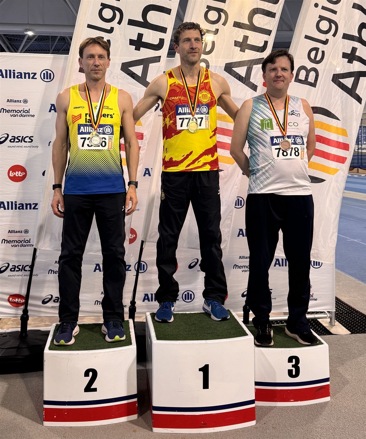Stijn Vereecken (M35-foto boven, rechts op het podium) liet zich eveneens opmerken in het verspringen met Limburgs goud en een vierde plaats op het BK. In het hink-stap-springen (HSS) pakte hij de Limburgse titel én veroverde hij brons op het Belgisch kampioenschap.
