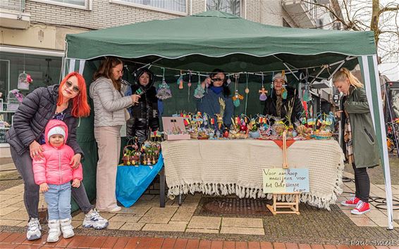 een stand op de markt in Neerpelt waar ze o.a. zelf geschilderde paaseitjes en zelf gebakken Oekraïense peperkoek verkochten.