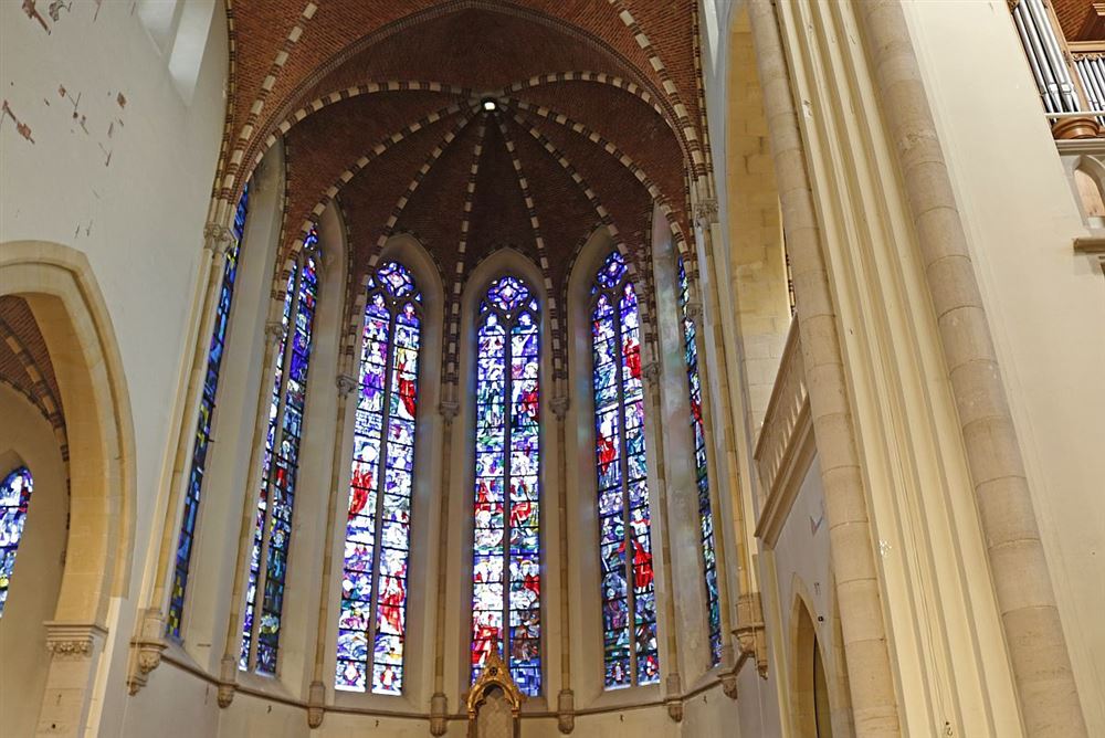 het koor en de dwarsbeuken aangepakt. In 2023 komt het middenschip aan de beurt. Het gaat vooral om herstellingen van glasramen, restauratie van muurschilderingen en algemene schilderwerken.