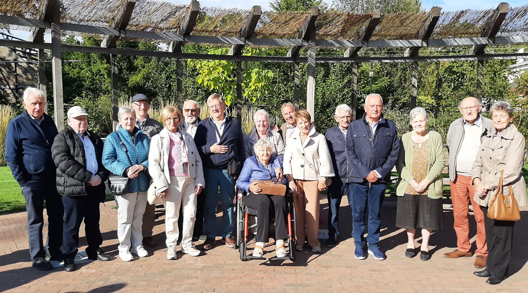 zestien aanwezigen, en ondanks het frisse weer zat de sfeer er goed in. Met een toeristisch treintje trokken ze vrolijk door hun geboortedorp, waar jolijt en herinneringen de boventoon voerden.