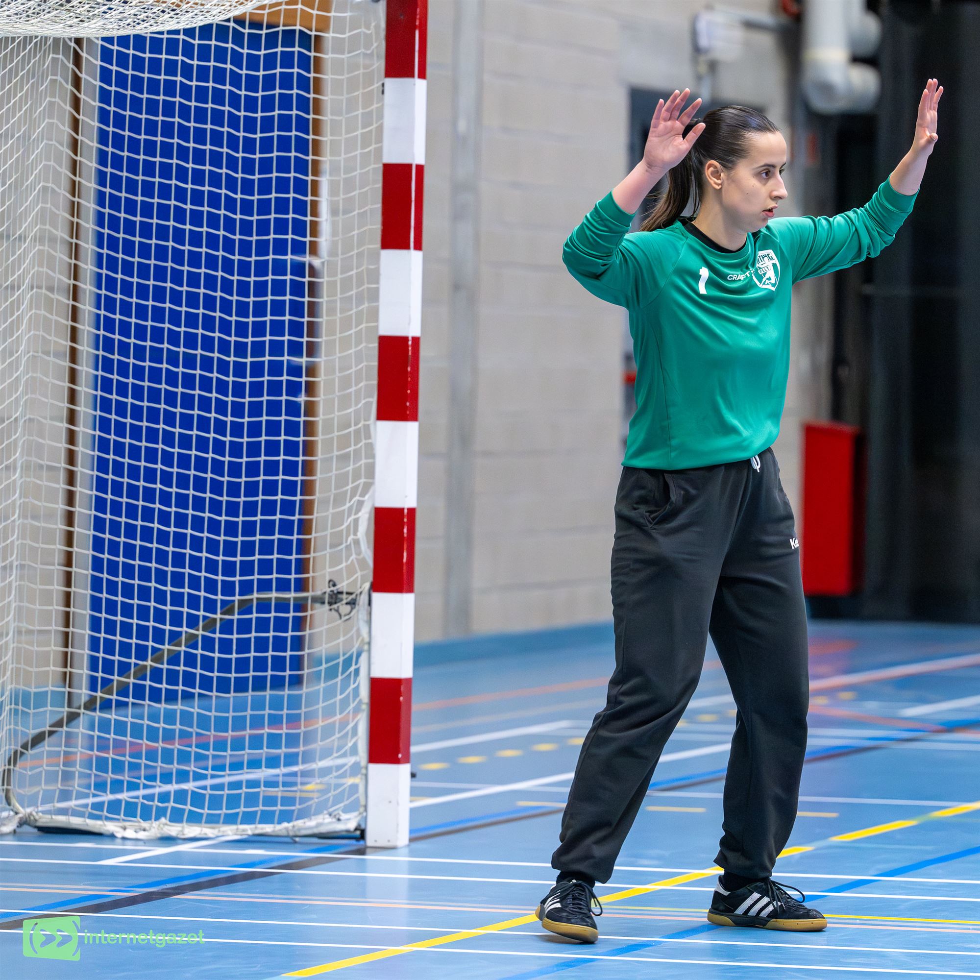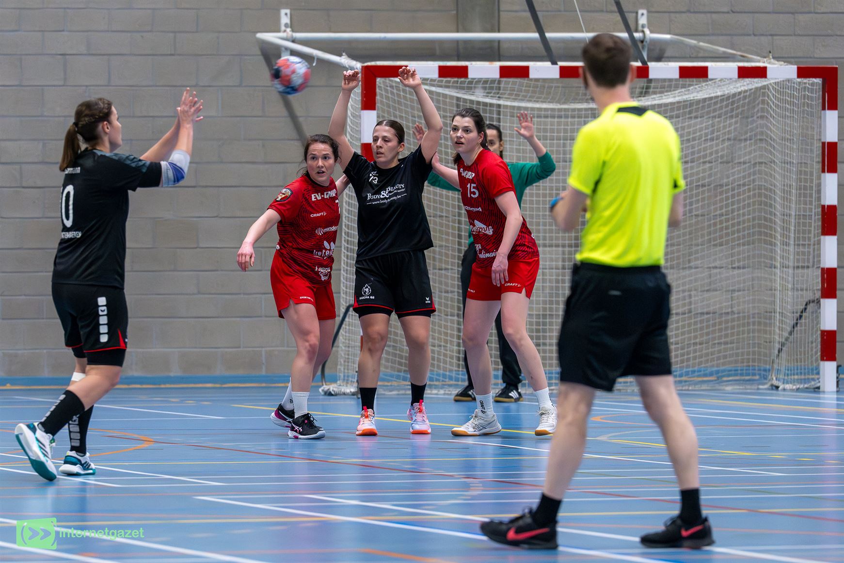 Na dertien speelminuten volgde een kantelmoment in de partij: kapitein Charlotte moest het veld verlaten na een rode kaart. Even leek dit de sfeer in de zaal te veranderen, maar Pelt liet zich niet van de wijs brengen. Integendeel, na twintig minuten stond er een duidelijke 12-5 voorsprong op het scorebord.