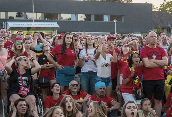 6.000 personen gesteld. Bovendien mag er geen blik of glas binnen op het terrein. Van vrijdag 22 uur tot zaterdag 2 uur is er op de Kerkdijk geen gemotoriseerd verkeer toegelaten tussen de Ringlaan en de Vloeterstraat. Gisterenavond kwamen voor de match tegen Japan nagenoeg 4.000 supporters opdagen. Foto's van Albert Loos