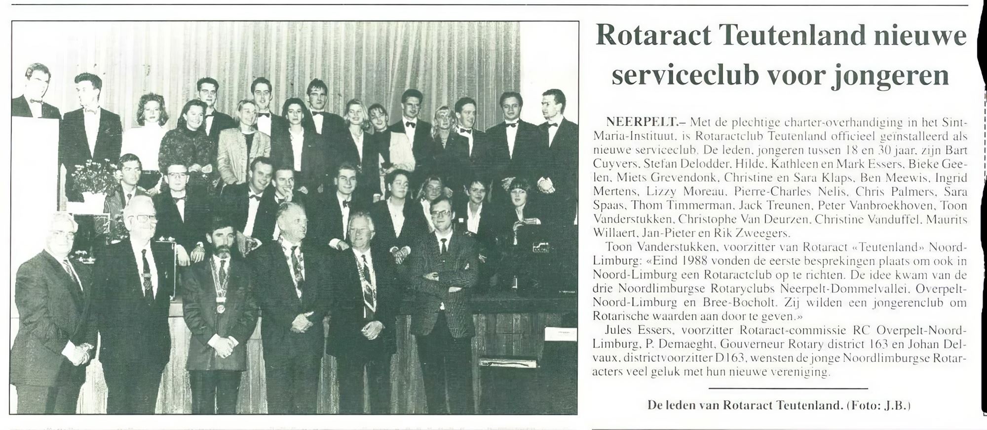 jongeren tussen 18 en 30 jaar, en in het artikel worden ze allen met naam genoemd. We hebben een flauw vermoeden dat de meesten onder hen al lang Neerpelt hebben verlaten, want slechts één naam doet een belletje rinkelen. Die vermoedde dat ze nog wel wat info over de serviceclub 'op zolder' had liggen, dus mogelijks kunnen we dit artikel eerstdaags nog verder updaten.
