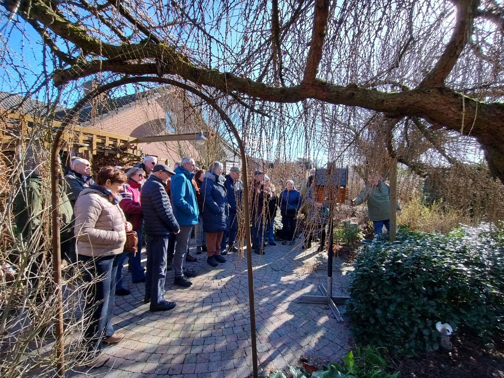 De eerste stop was in de tuin van Annemie en Theo (Veurterstraat 10). Daar werd van elke struik – jammer genoeg telkens maar eentje – een demonstratie gegeven. Zo kregen de deelnemers een duidelijk beeld van de juiste aanpak, zonder dat de hele tuin eraan moest geloven.