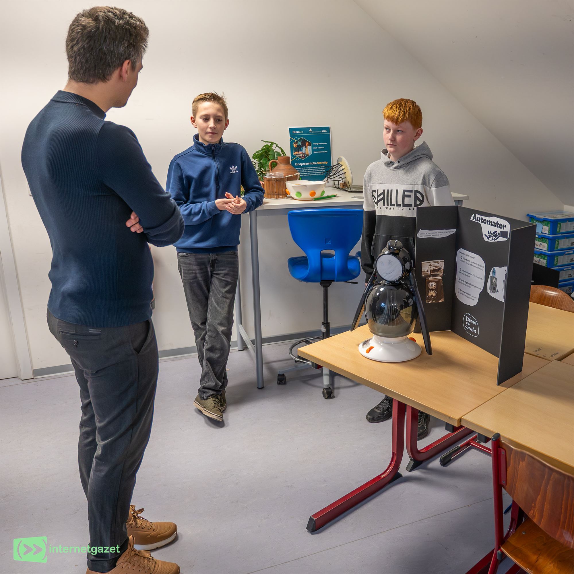Donderdagvoormiddag kregen de leerlingen alvast bijzonder bezoek. Dr. Senne Seneca, onderzoeker aan het Max Planck Institute for Medical Research én oud-leerling van de school, begeleidde hen in de verfijning van hun presentaties. Als STEM-ambassadeur van de toekomstige projecten legde hij de nadruk op helder communiceren: hoe breng je duurzaamheid overtuigend? En hoe verwoord je de kern van je onderzoek en ontwerp?