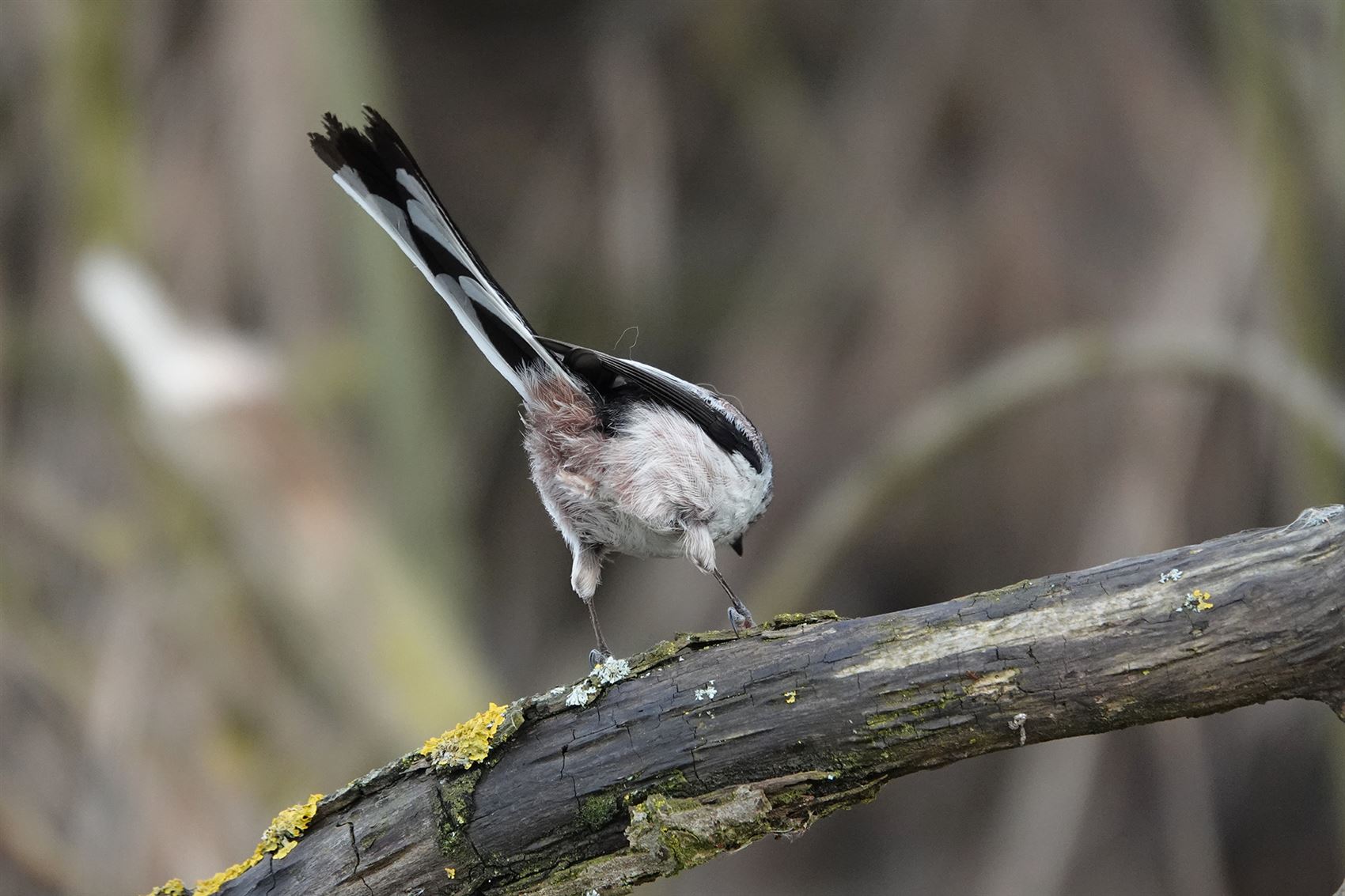 Dat moment duurde echter niet lang: op enkele seconden tijd kon Marcella deze foto maken. Staartmezen zijn immers bijzonder beweeglijk en zelden lang op dezelfde plek te zien.