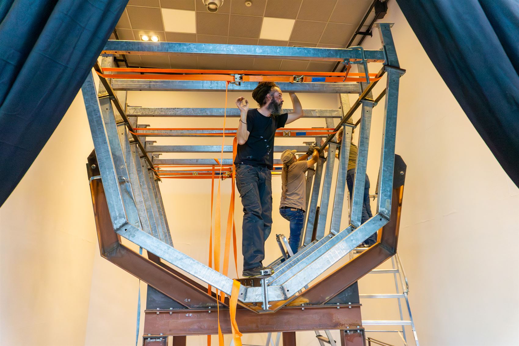 Bezoekers van CC Palethe wrijven de ogen uit: naast de foyer is plots een bouwwerf verschenen. Een indrukwekkende constructie – die wel wat weg heeft van een boot – lijkt zich een weg te wringen tussen de muren van Palethe.