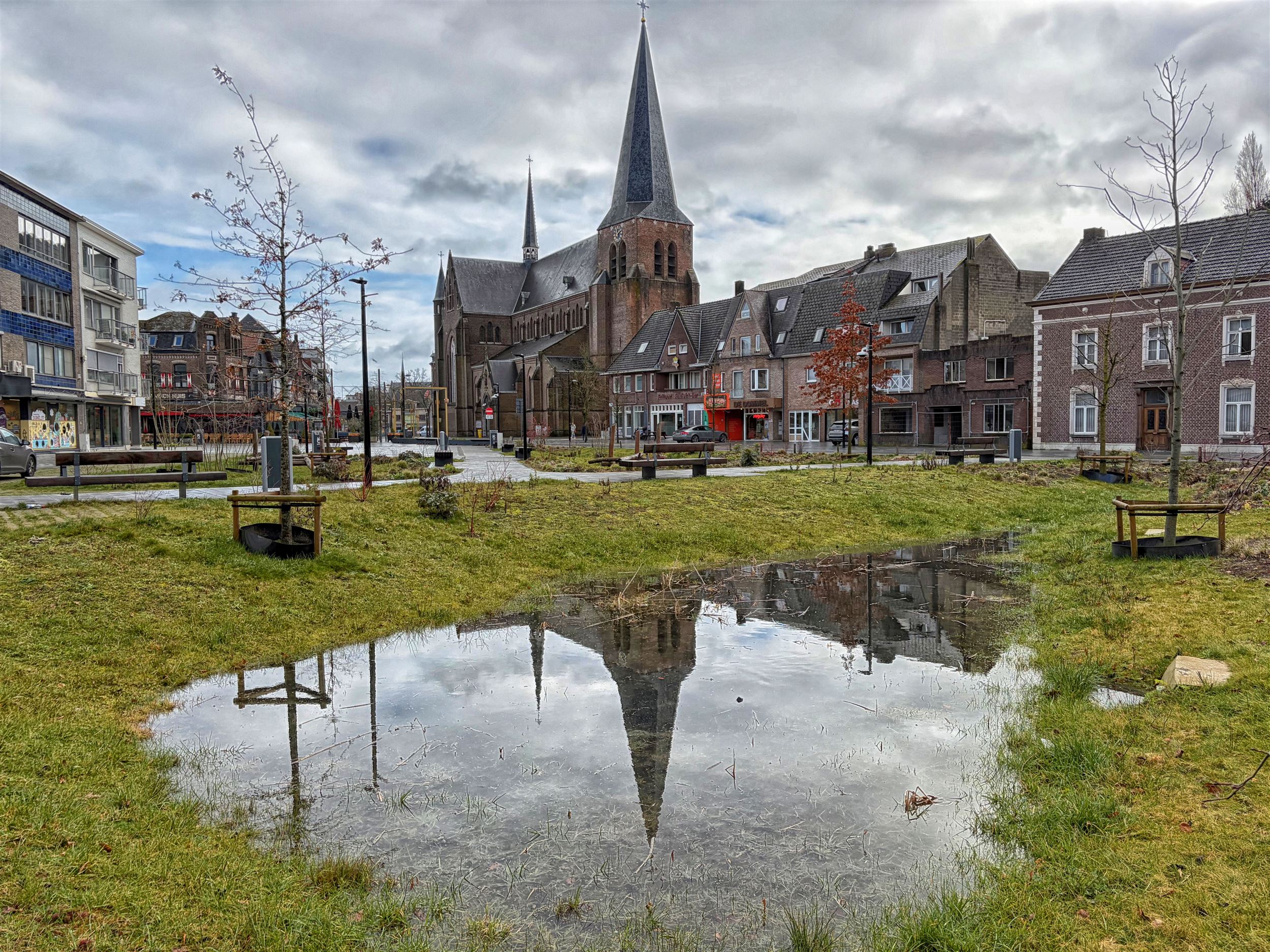 Dat heeft minder met de totale hoeveelheid regen te maken en meer met de spreiding ervan. Enkele intensere buien op korte tijd kunnen ervoor zorgen dat het water zich tijdelijk ophoopt in lage zones, zoals de wadi op het Marktplein. Zo’n wadi is trouwens net bedoeld om regenwater tijdelijk op te vangen en vertraagd te laten infiltreren in de bodem. Dat ze nu gevuld is, betekent dus ook dat ze haar werk doet.