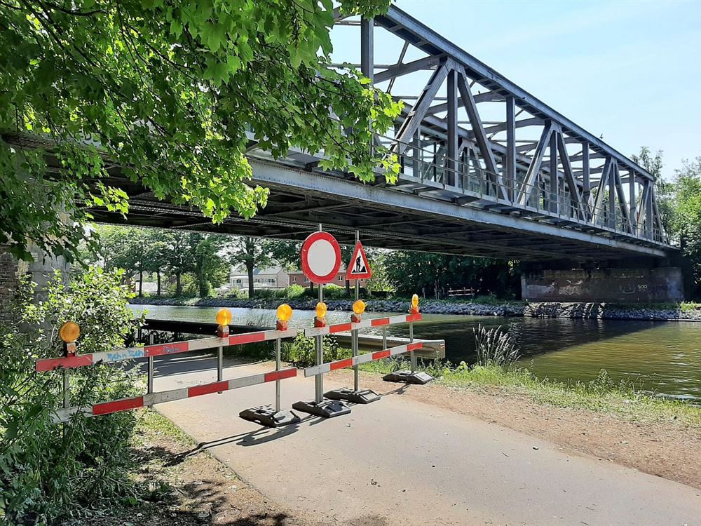 kunnen fietsers niet meer onder de brug door. Ze moeten plaatselijk omrijden. De werken duren vermoedelijk