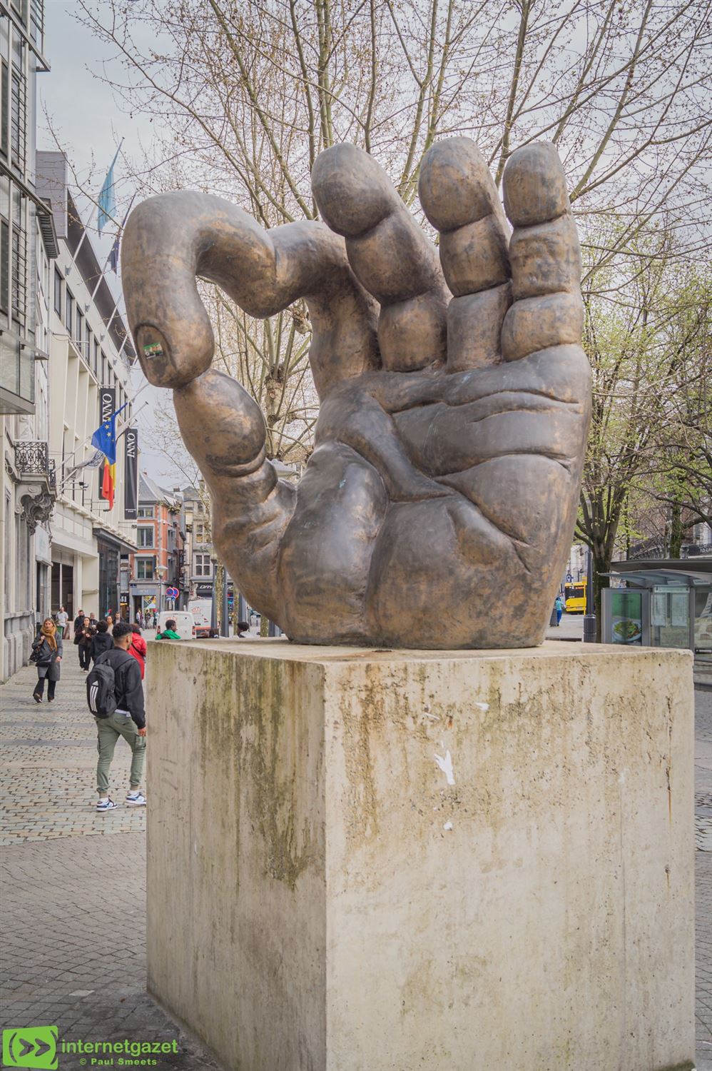 Tijdens een bezoek aan Luik botste Smeets op het monumentale kunstwerk Liège Love City, een grote hand die een hartvorm uitbeeldt en centraal in de stad staat. De gelijkenis met het herkenbare handlogo van Pelt is moeilijk te missen.