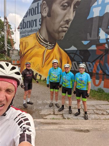 Na nog wat klimmetjes kwamen we aan bij onze bestemming in Kiezegem (tja, dat ligt nog gevoelig, niet Meensel): de geboorteplek van Eddy Merckx waar een standbeeld van hem staat.