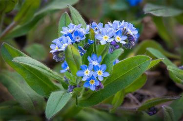 bosvergeetmijnietje (Myosotis Sylvatica) - nog geen centimeter in doormeter, maar het valt erg op door zijn felblauwe kleuren.