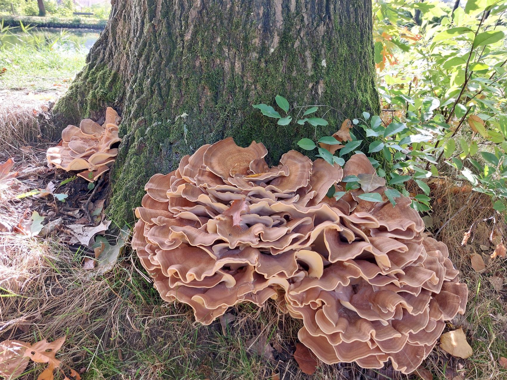 De reuzenzwam leeft deels op levende bomen en deels op dood hout. Zo helpt hij mee aan de natuurlijke kringloop in het bos. Een opvallende herfstverschijning!
