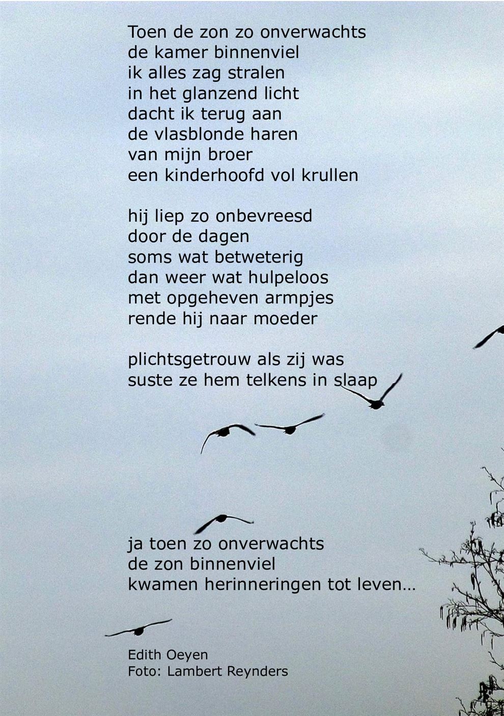 Ons weekendgedicht van Edith kleurt wat grijs vandaag.