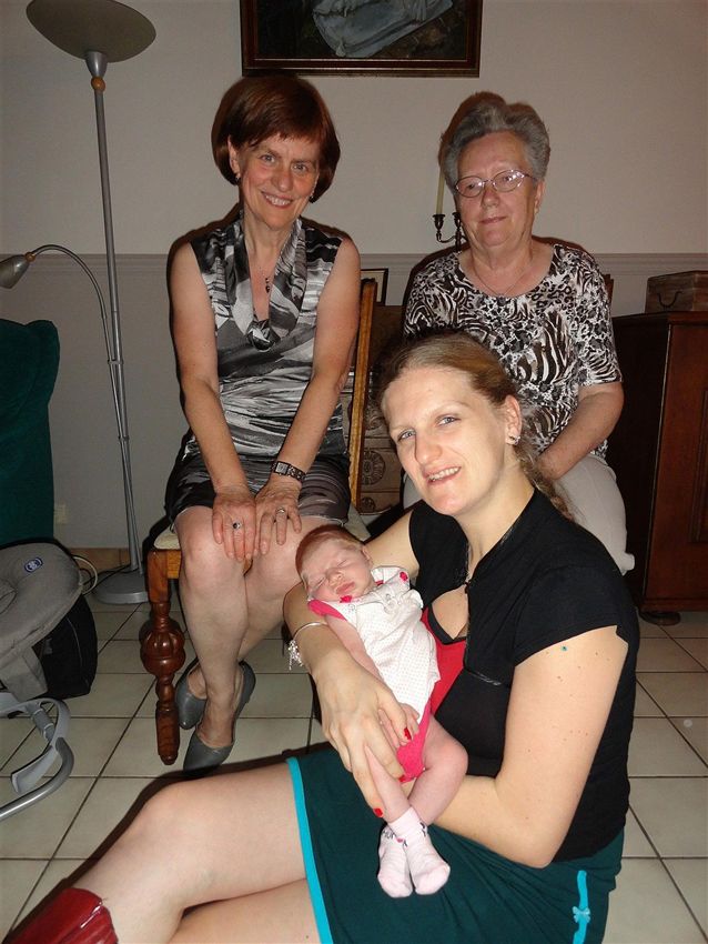 op 20 augustus waren er vier generaties in de familie: Catho Franssen (78), Eliane Loenders (54), Sara Martens (30) en Lise Cornelissen (3 weken nu).