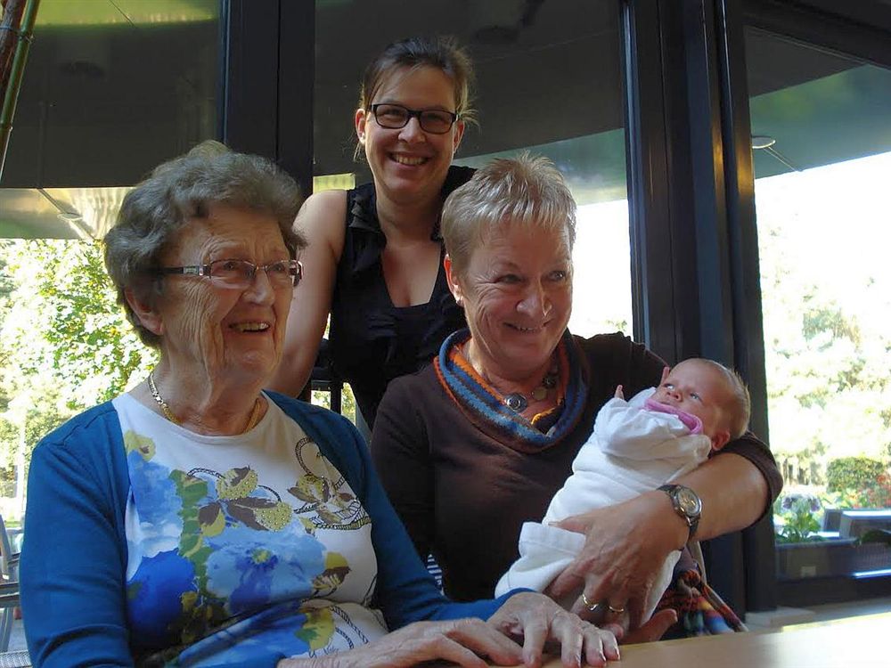 vier generaties in vrouwelijke lijn in dezelfde familie gevierd. Op de foto Lena Geunes-Smeets (92 - Neerpelt) die al 11 jaar in het rusthuis verblijft, oma Carine (59 - Neerpelt), mama Lene Severens (30- Overpelt) en de kleine Janne Corten.