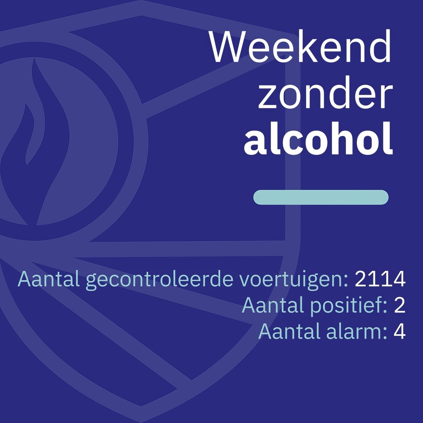Tijdens het voorbije actieweekend werden in de zone in totaal 2.114 voertuigen gecontroleerd. Daarbij legden 2 bestuurders een positieve alcoholtest af. Daarnaast waren er 4 bestuurders met een alarmwaarde.